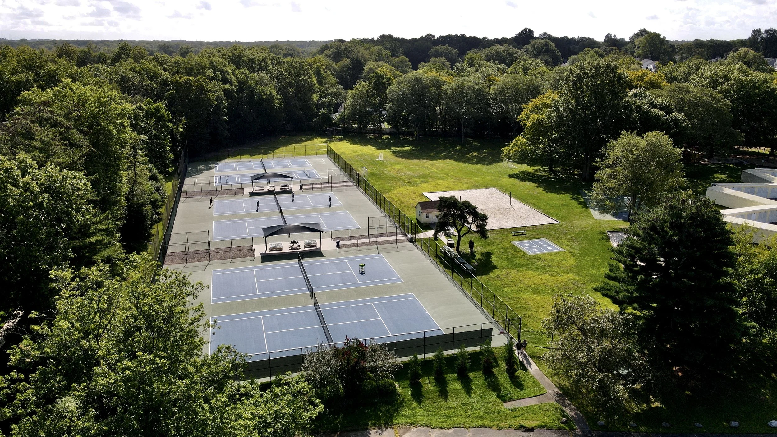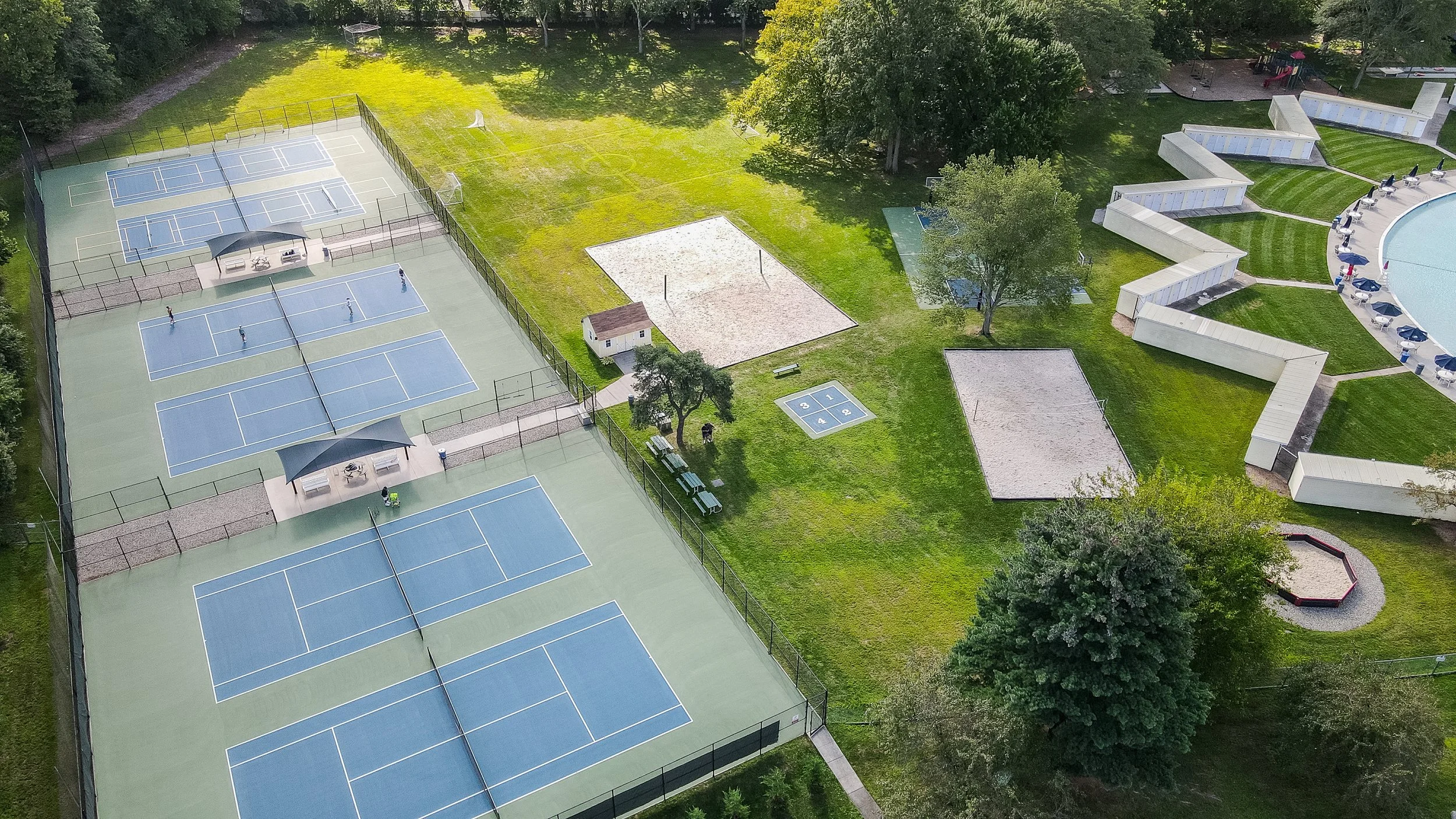 Updated tennis courts with post-tensioned concrete. Courts 5 & 6 are lined for pickleball with separate rollout nets. read more